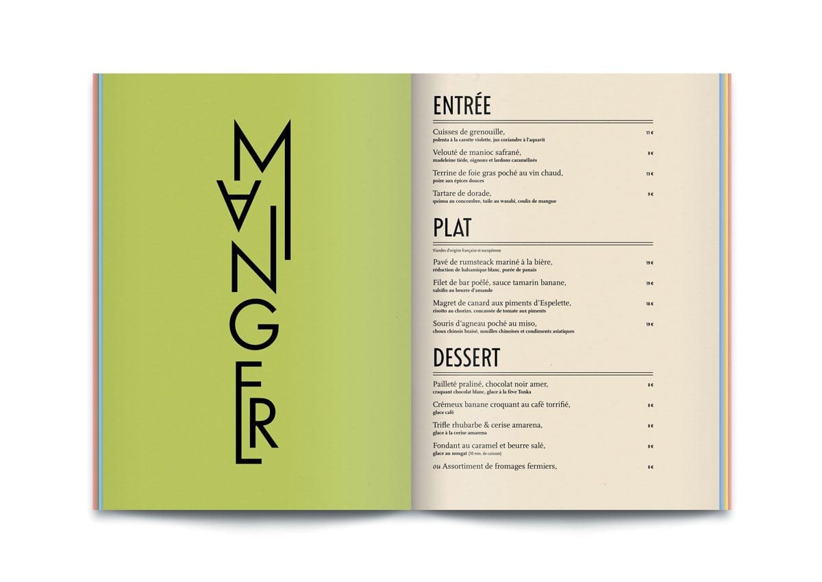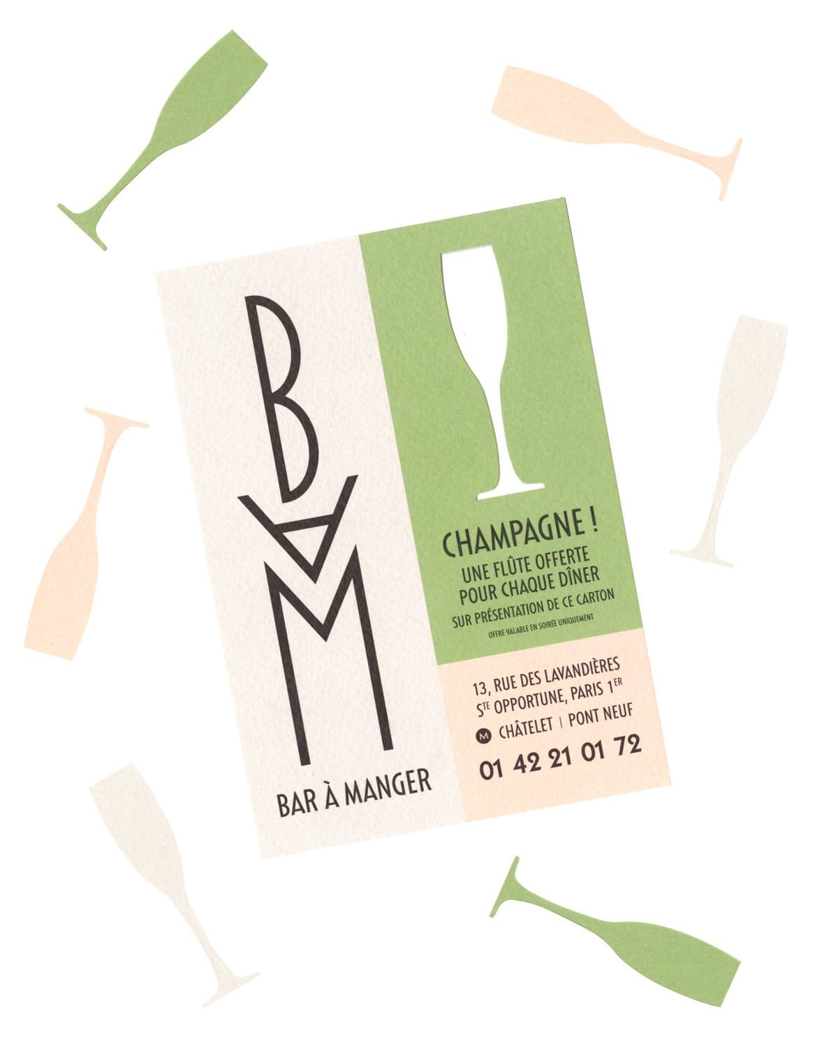Le BAM – Bar à Manger – est un bar situé au cœur du premier arrondissement de Paris, au décor industriel chic. Pour le BAM, les graphistes réalisent logo, cartes et site. Inspirés par l’univers bistrot des années 1930, ils en livrent une ré-interprétation contemporaine, élégante et fraîche.