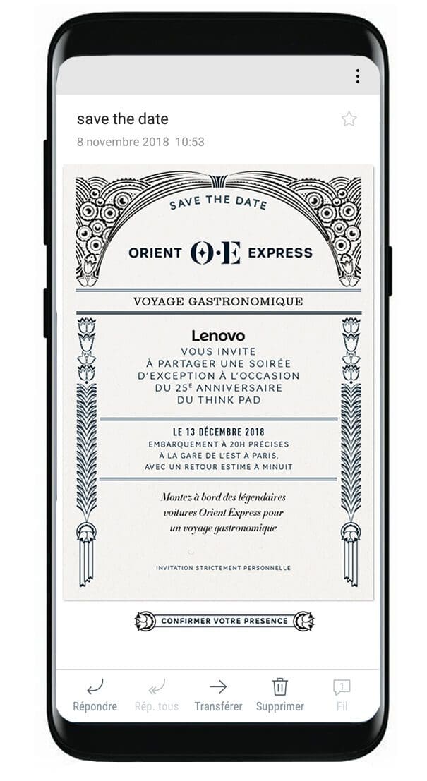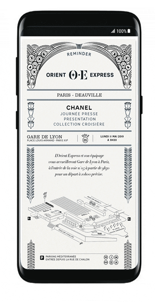 Et pour ne rien laisser au hasard, l’invité reçoit également le jour même un reminder numérique avec toutes les informations nécessaires à son arrivée à quai.