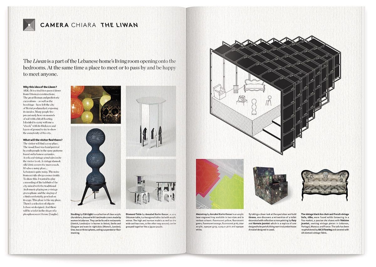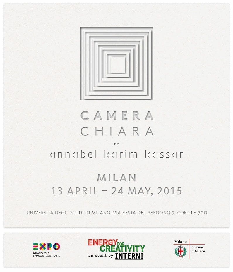 Ich&Kar dessine l'identité de CAMERA CHIARA, l'installation architecturale magistrale et symbolique de l’architecte Annabel Karim Kassar. Dans le cadre de l’exposition ENERGY FOR CREATIVITY organisée par le magazine italien INTERNI, au sein de la prestigieuse université de Milan, l’architecte de renomée internationale Annabel Karim Kassar a été invité à exposer une structure monumentale. Camera Chiara, une prise de parole et une prise de vue capitale, sa vision panoptique de la vie quotidienne dans un intérieur libanais.