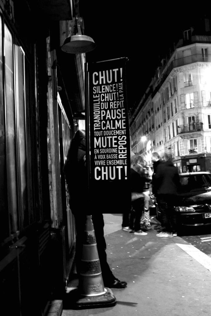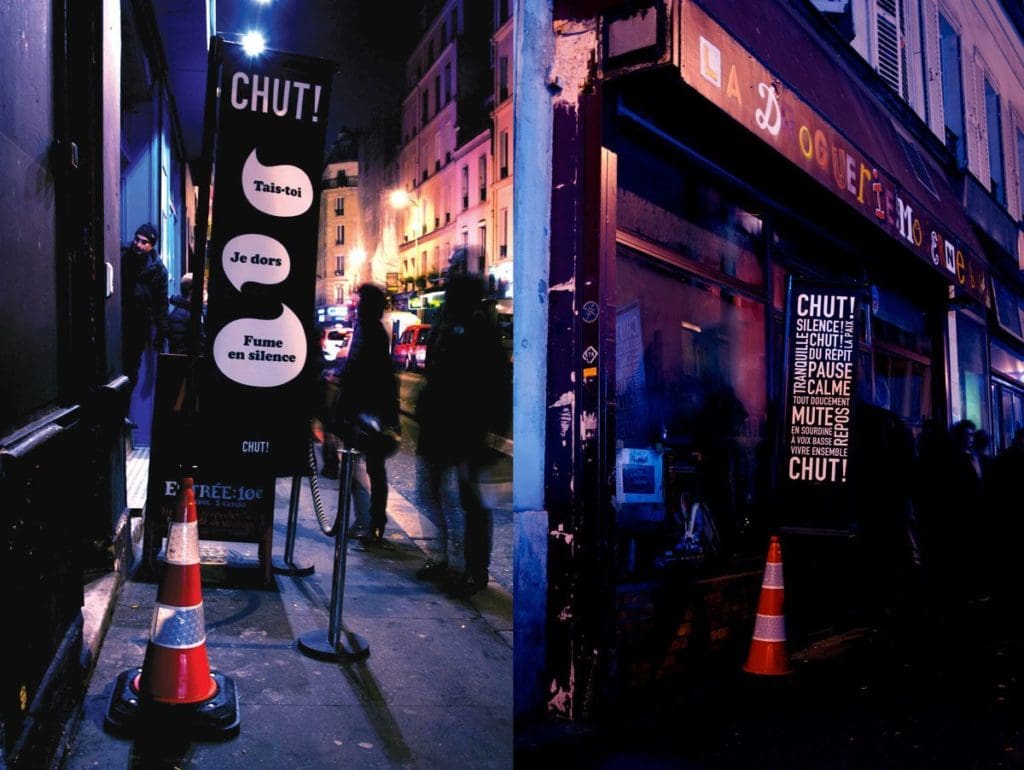 Ainsi Said Messous (Alimentation Générale) coprésident de l’association des cafetiers JPT demande à Ich&Kar de réfléchir à un outil de communication à l’attention de leurs clients. Le projet Chut ! enchante tout de suite les membres de l’association, ainsi les 10 cafés membres s’équipent de 2 Chut ! chacun, afin d’investir pleinement la rue du message de silence.Le projet rencontre déjà un succès, d’autres bars et restaurants de la capitale passent commande !!!