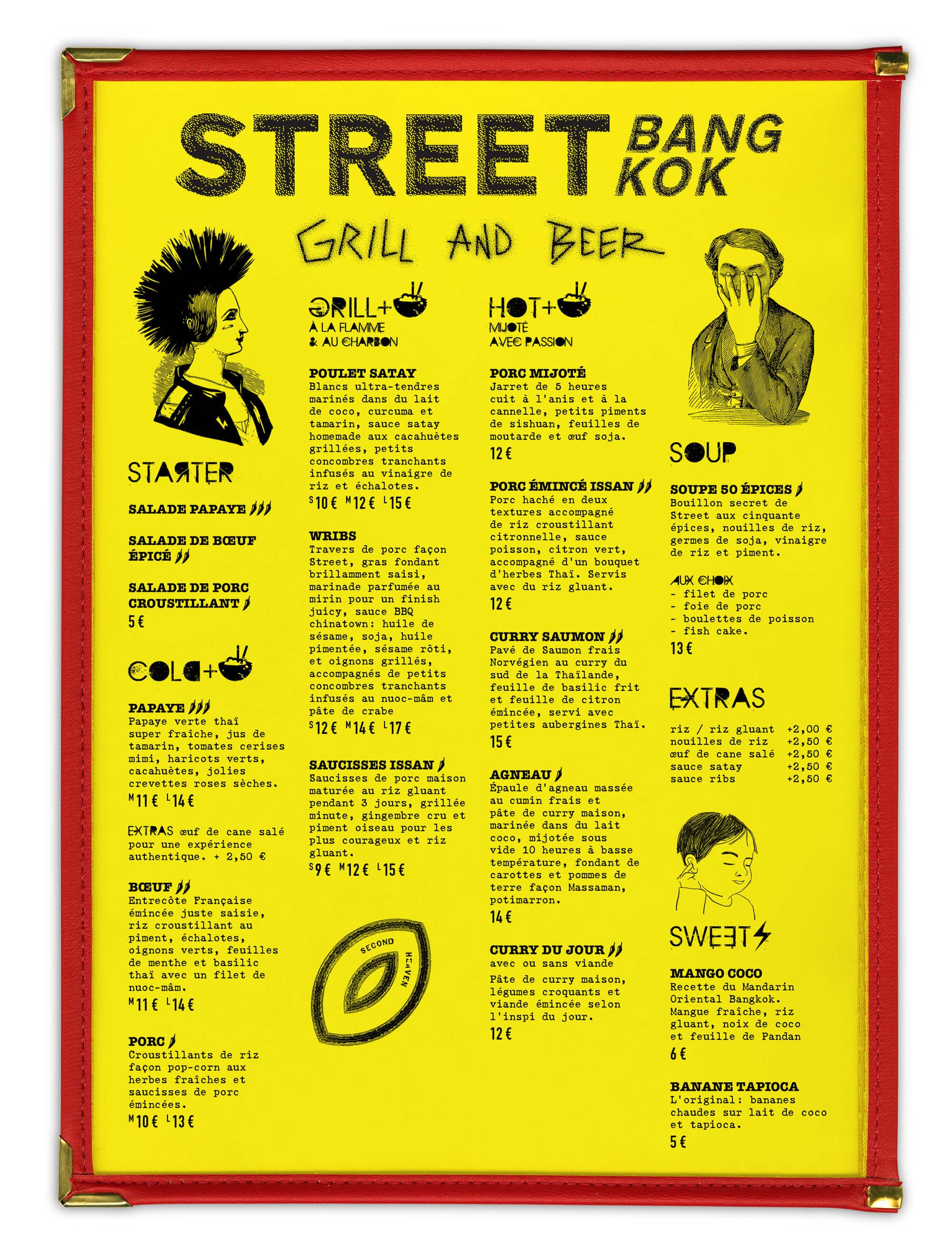 Pour Street Bangkok, Ich&Kar dessine des menus punk flashy, qui font la part belle aux typographies trash. Un travail calibré qui surfe sur les codes du fanzine Punk avec une iconographie excentrique et pimentée.