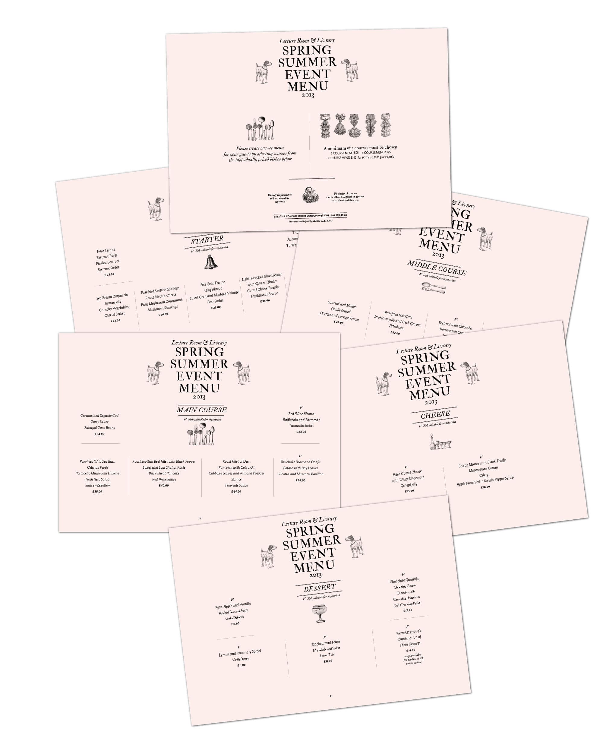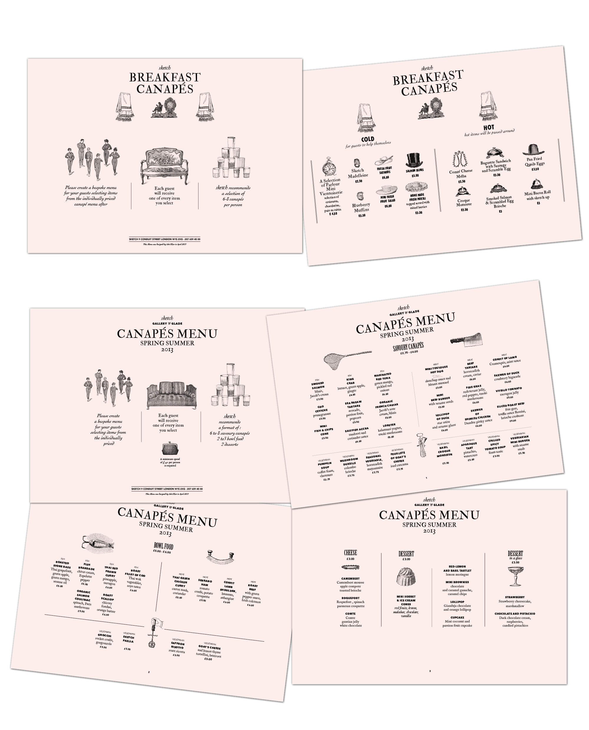 Les events au Sketch Au Sketch, on peut organiser un anniversaire, un mariage, une soirée privée… Mais la multiplicités des lieux et des menus du Sketch rend l’information complexe à décrypter. Il fallait donc créer un outil facile et pratique pour que les équipes de communication puissent présenter l’offre aux clients. Mais hors de question pour Ich&Kar de concevoir de simples documents administratifs ! Les graphistes créent donc des fiches à imprimer ou à envoyer en pdf à la mise en page élégante, où l’on retrouve les gravures iconiques du début du XXè siècle et le rose de l’identité visuelle.