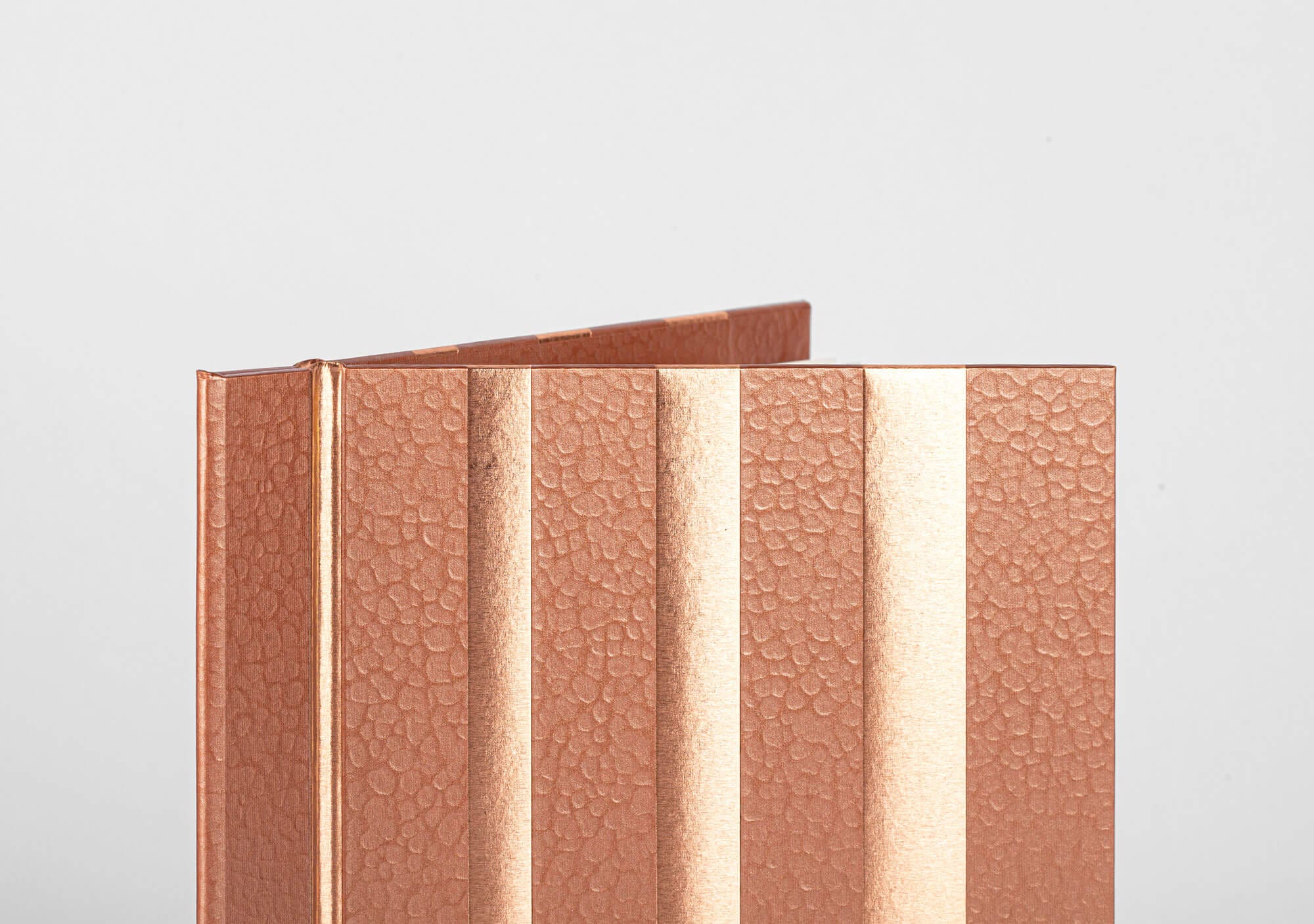 Pierre Gagnaire confie la carte des vins de son restaurant Gaya à Ich&Kar. Helena imagine un motif qui fait écho aux colonnes cuivrées du restaurant. Une belle fabrication mêlant papiers de choix dorure et aimants. Santé !
