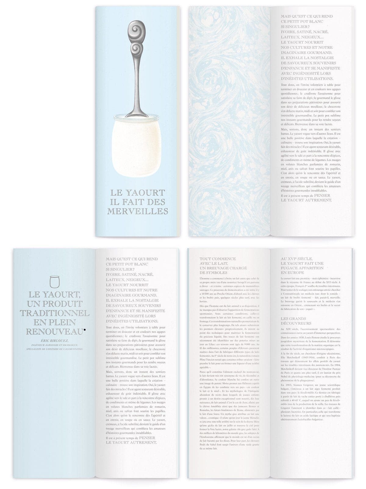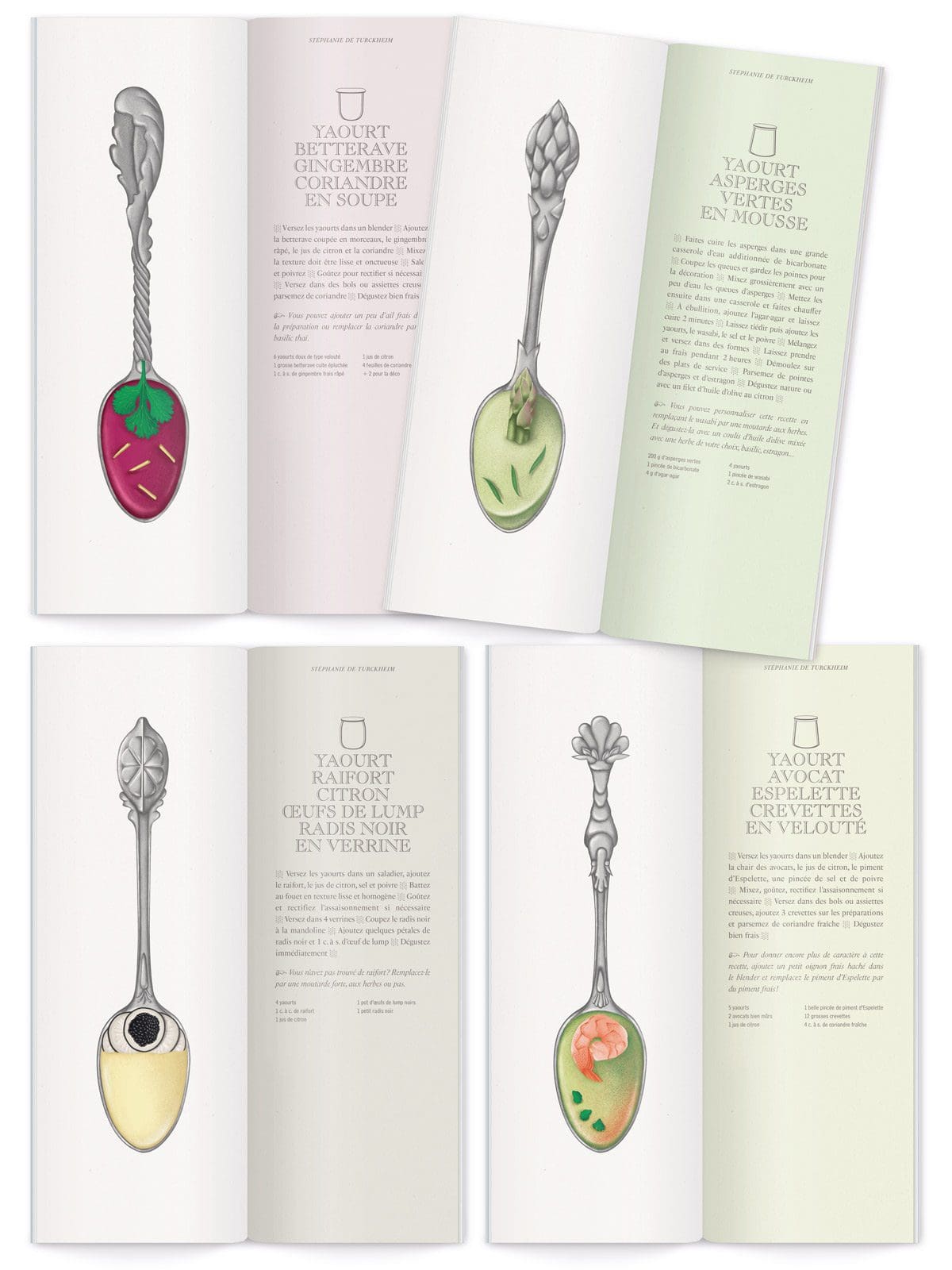 Penser le yaourt autrement tel était le mot d’ordre de ce singulier livret commandé par le Cniel. Pour célébrer le petit pot blanc, Stéphanie de Turckheim et Jean-Charles Karmann imaginent d’ingénieuses recettes pleines de douceur et de gourmandise. De la betterave au comté en passant par des classiques revisités, le yaourt se pare de mille saveurs à la gloire de son onctuosité.