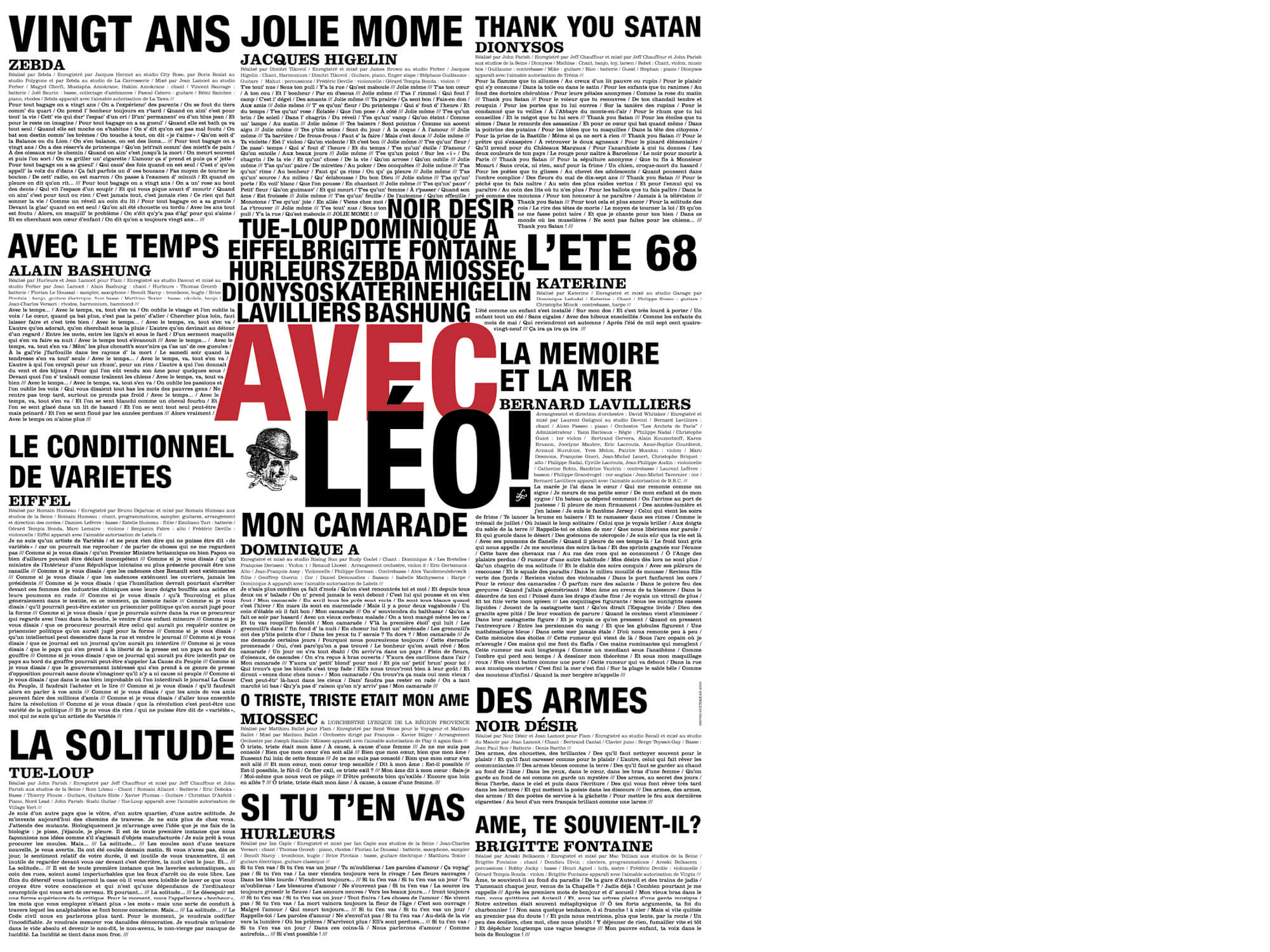 C'est grâce à Thérèse Chasseguet, directrice artistique chez Barclay, qu'Ich&Kar s'embarque dans L'aventure Léo Férré. Avec elle, les graphistes dessineront le coffret de l’intégral Léo chante Ferré, puis celui de Léo chante les poètes et avec la complicité de Jérome Marroc-Latour, un album de reprises intitulé Avec Léo. Trois design en rouge et noir, couleurs emblématiques du chanteur-poète anarchiste…