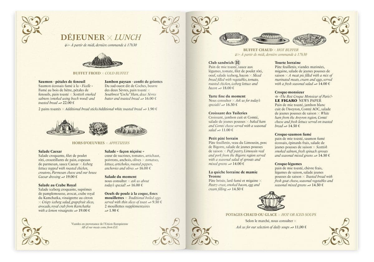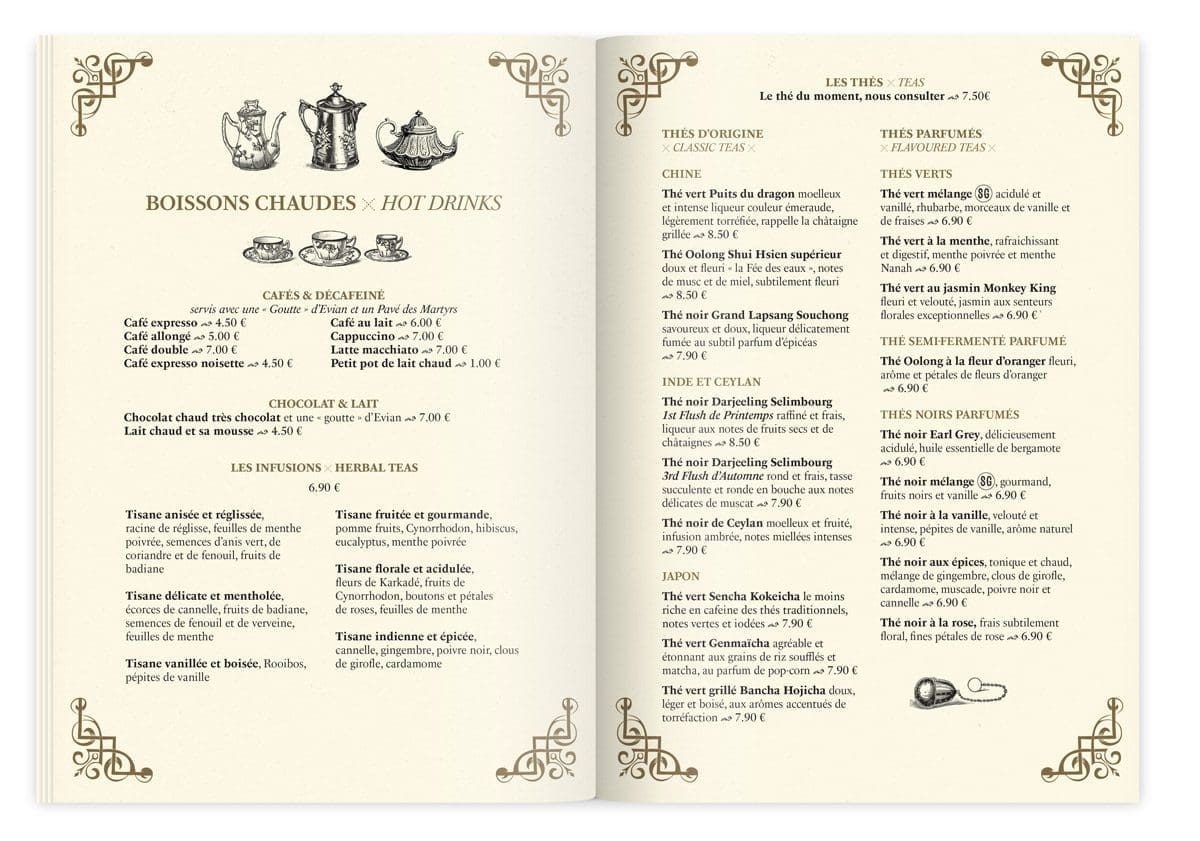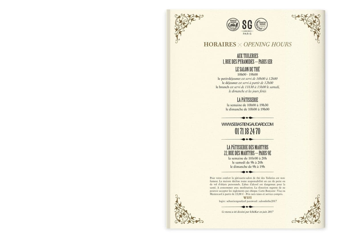 Pour illustrer l’excellence des douceurs sucrées et salées à la carte, le studio plonge dans son incroyable collection de gravures du XIXe siècle. Ils y sélectionnent avec soin une iconographie riche et pointue, en hommage au savoir-faire de Sébastien Gaudard. 12 pages d’amuse-bouche à déguster avec les yeux.