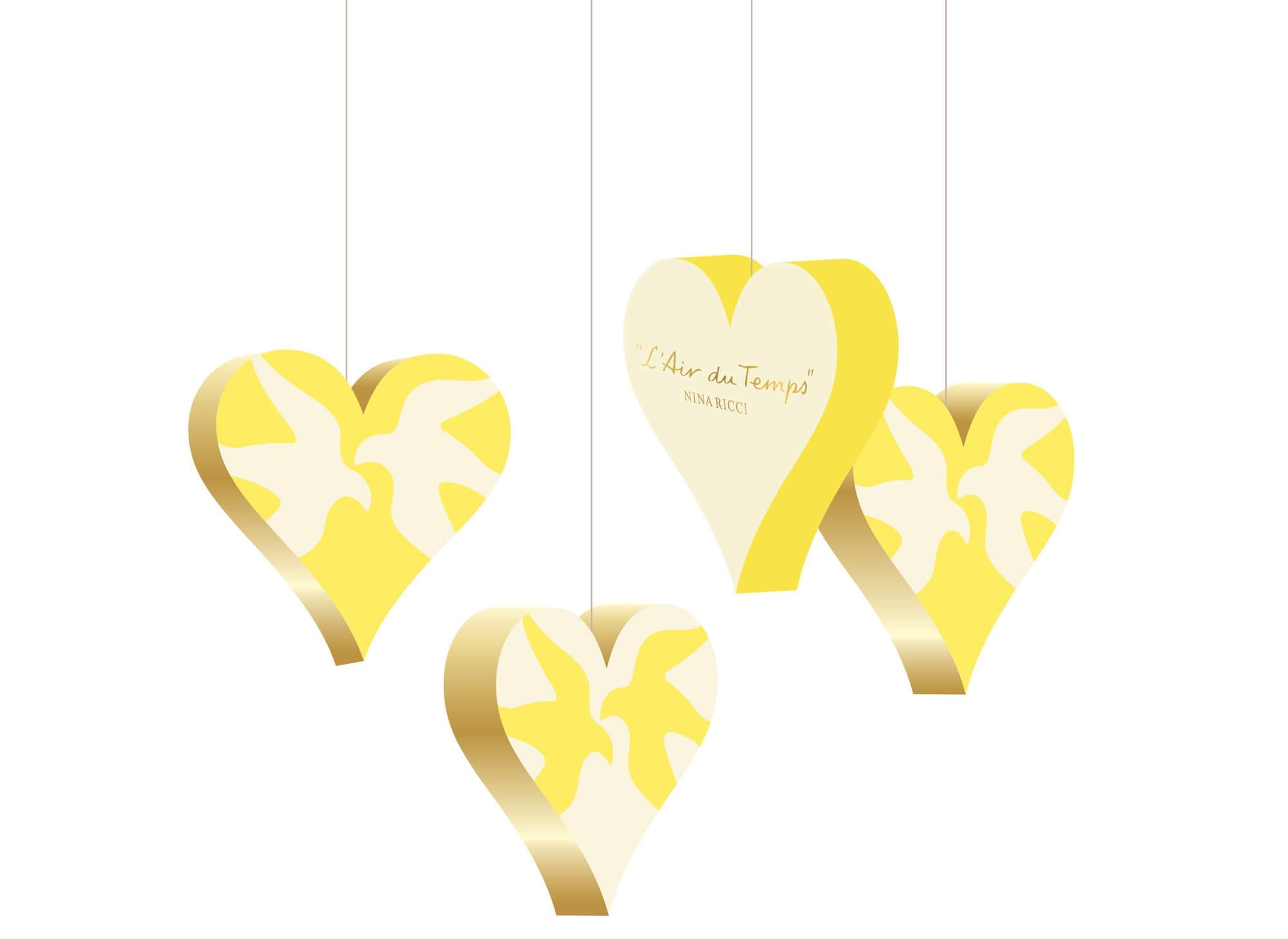 Ich&Kar dessine un coffret pour «l’Air du temps». Les colombes, le blanc, le jaune, une touche d’or… Les fondamentaux de la marque reprennent leur place.