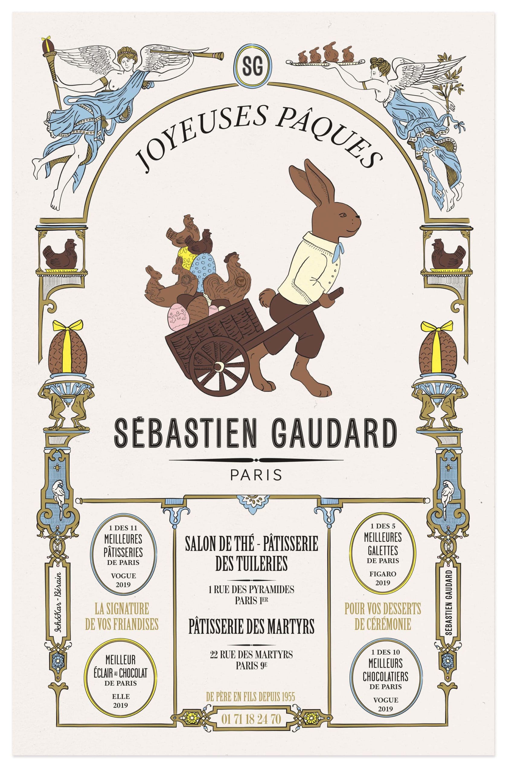 L’heure de Pâques a sonné à la Pâtisserie des Martyrs, comme à la Pâtisserie des Tuileries. Sébastien Gaudard nous fait retomber en enfance avec ses spécialités incontournables des fêtes Pascales et une collection de boîtes ornées de gravures dessinées par IchetKar !