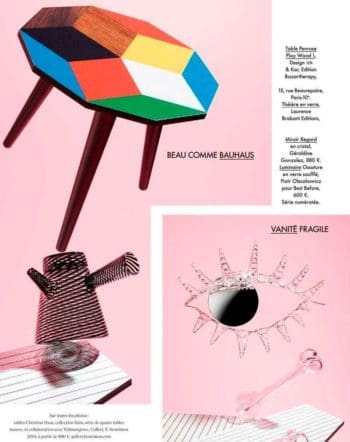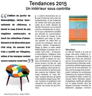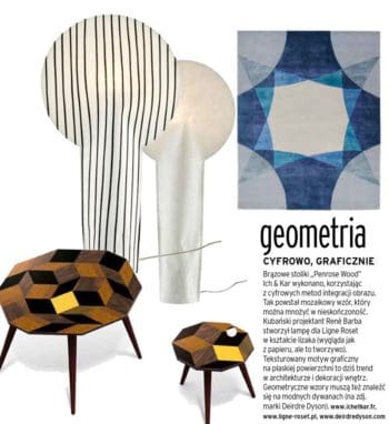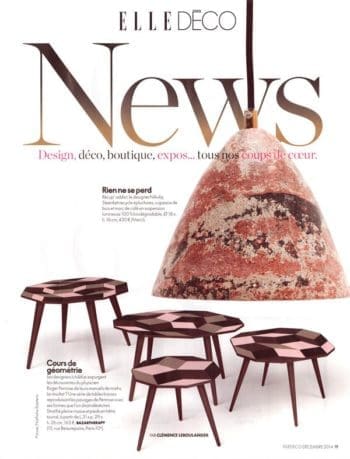 La table Penrose Playwood éditée par Bazartherapy et dessinée par IchetKar est dans le dossier tendances 2015 de Home Fashion News, Un article de Nadine Guérin.