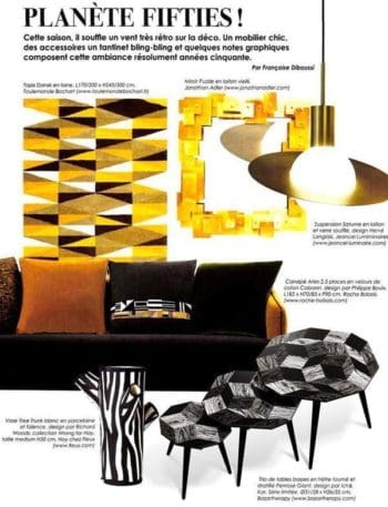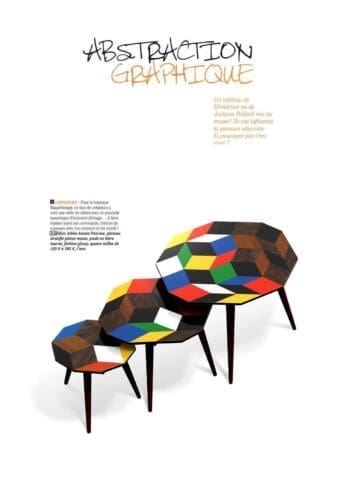 Le trio de table Penrose Crazy Wood dessinés par Ich&Kar, édités par Bazartherapy est dans la rubrique Salons d'Automne du magazine Maison Côté Est d'octobre 2015. Article de Cécilia Blachas.