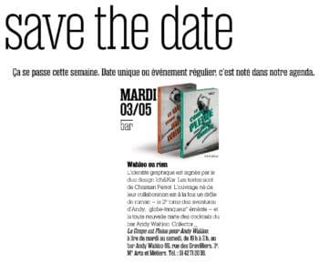 La nouvelle carte du bar Andy Wahloo, recueil de nouvelles écrit par Christian Perrot, design IchetKar, est dans le À nous Paris de la première semaine de Mai.