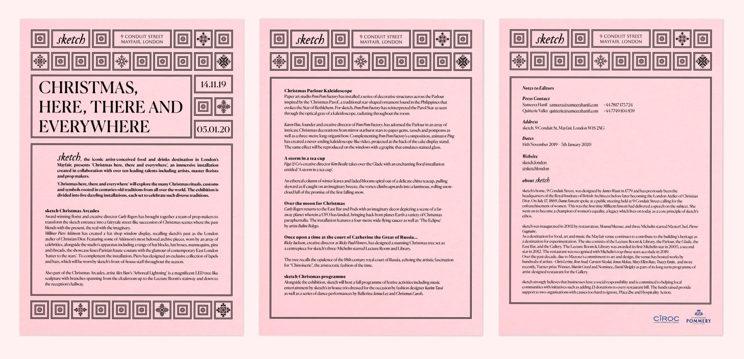 IchetKar réalise le dossier de presse de l'exposition Christmas au restaurant gastronomique Sketch à Londres